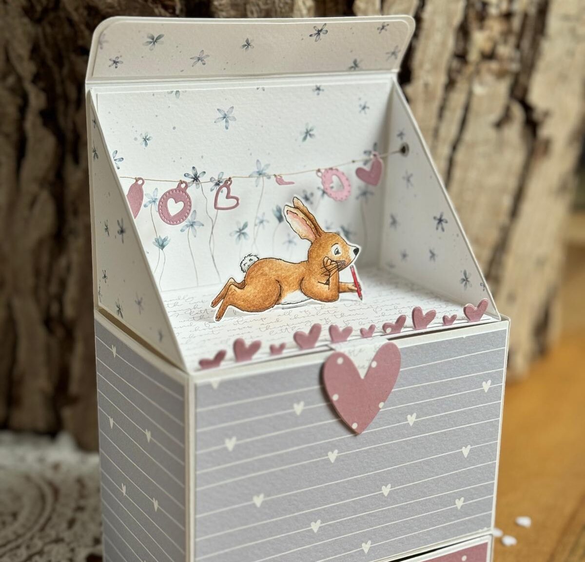Eine liebevoll gestaltete Popup-Box mit Schublade, die beim Öffnen mit einer zauberhaften 3D-Szene überrascht.