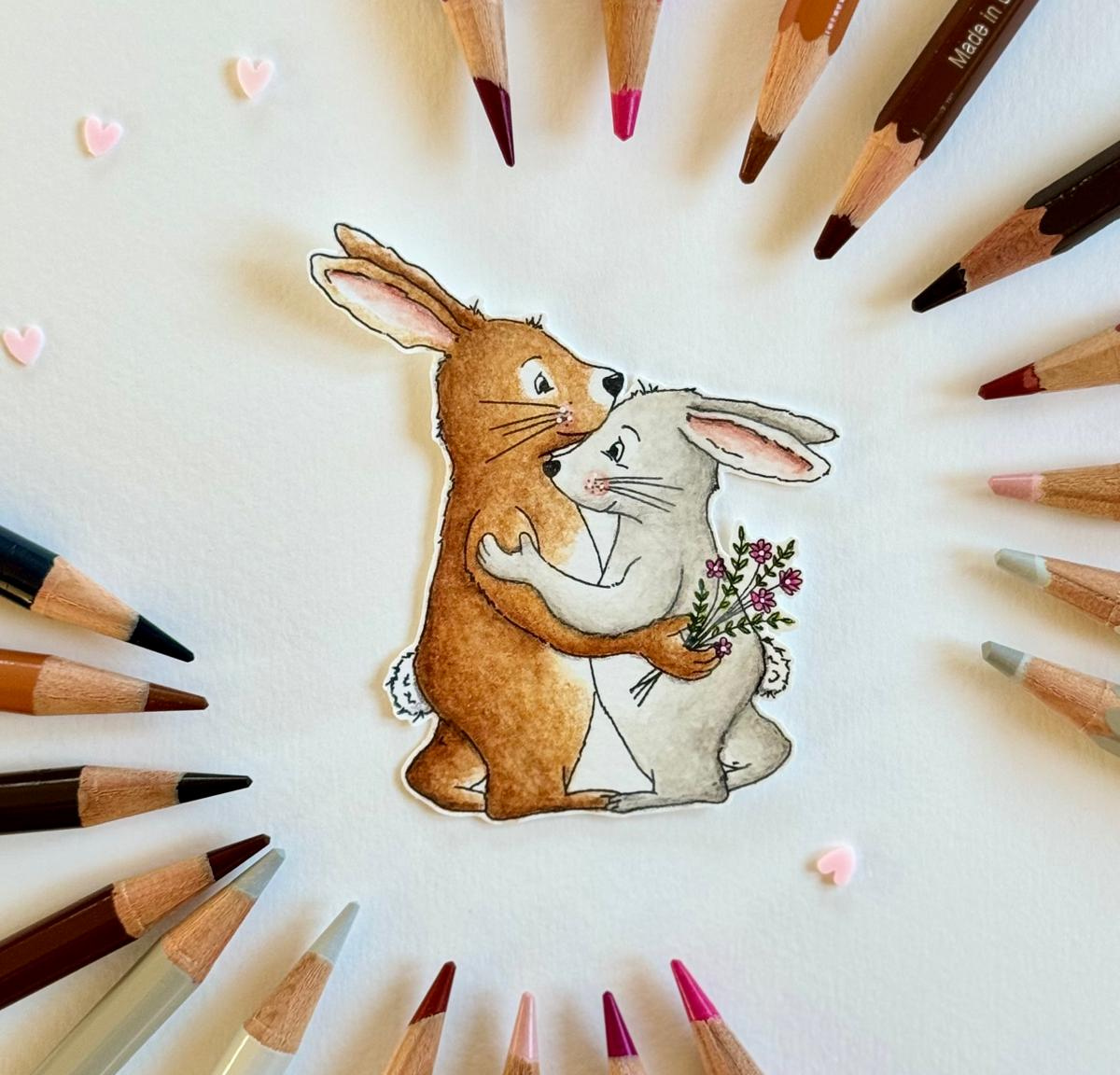 Die von mir liebevoll gestalteten Hasenmotive eignen sich ideal, um das Colorieren mit Aquarellstiften und Polychromos kennenzulernen und sicher anzuwenden.